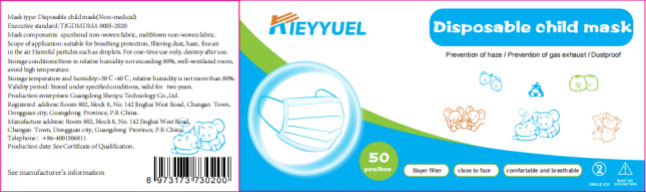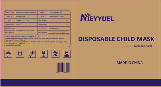Unu-uza infana masko has a three-layer structure, with 25g non-woven fabric for the outer fabric, 25g melt-blown fabric for the middle layer, 18g non-woven fabric for the base fabric, and nose bridge clips and ear straps.