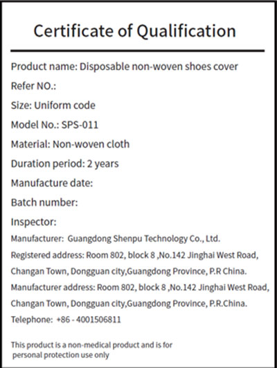 3.DisponableNe-teksita ŝuo CoverrParameter-specifoj