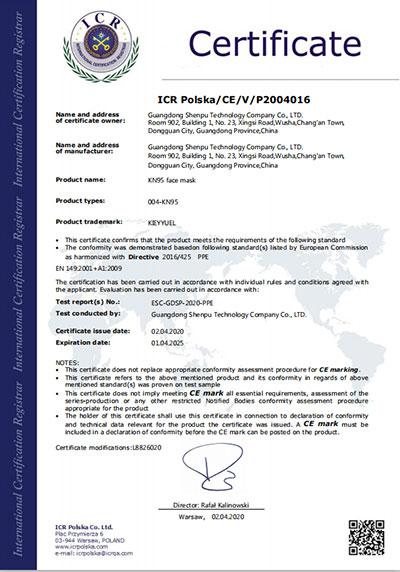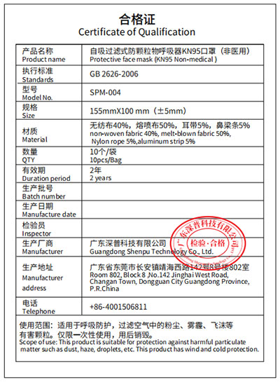 N95 Protekta Masko (faldebla)-Certificate of Qualification